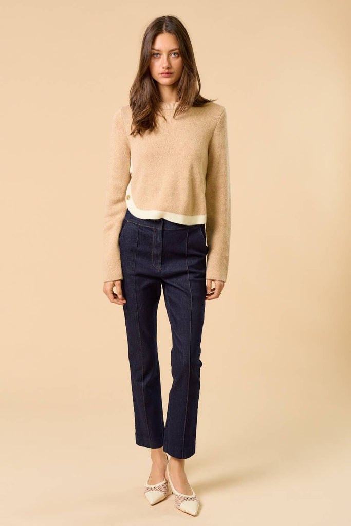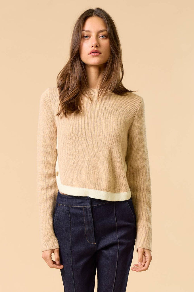 Elevate your sweater game with this stylish Sweater featuring a contrast design and trendy side buttons. The contrast detailing adds a modern twist to the classic knit, while the side buttons provide an extra element of style and functionality. Perfect for layering or wearing solo, this sweater is a versatile addition to your wardrobe for both casual and chic looks. Pair with jeans or skirts for a fashion-forward, everyday outfit.