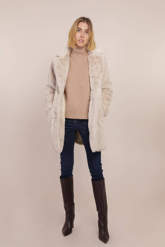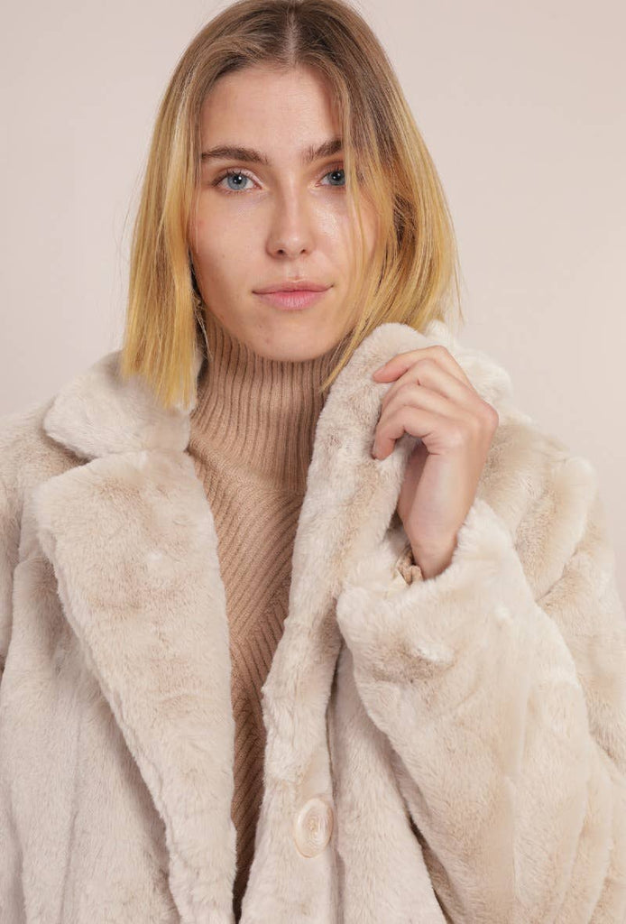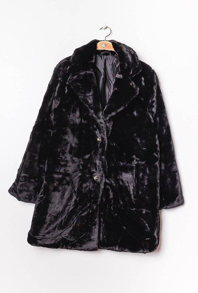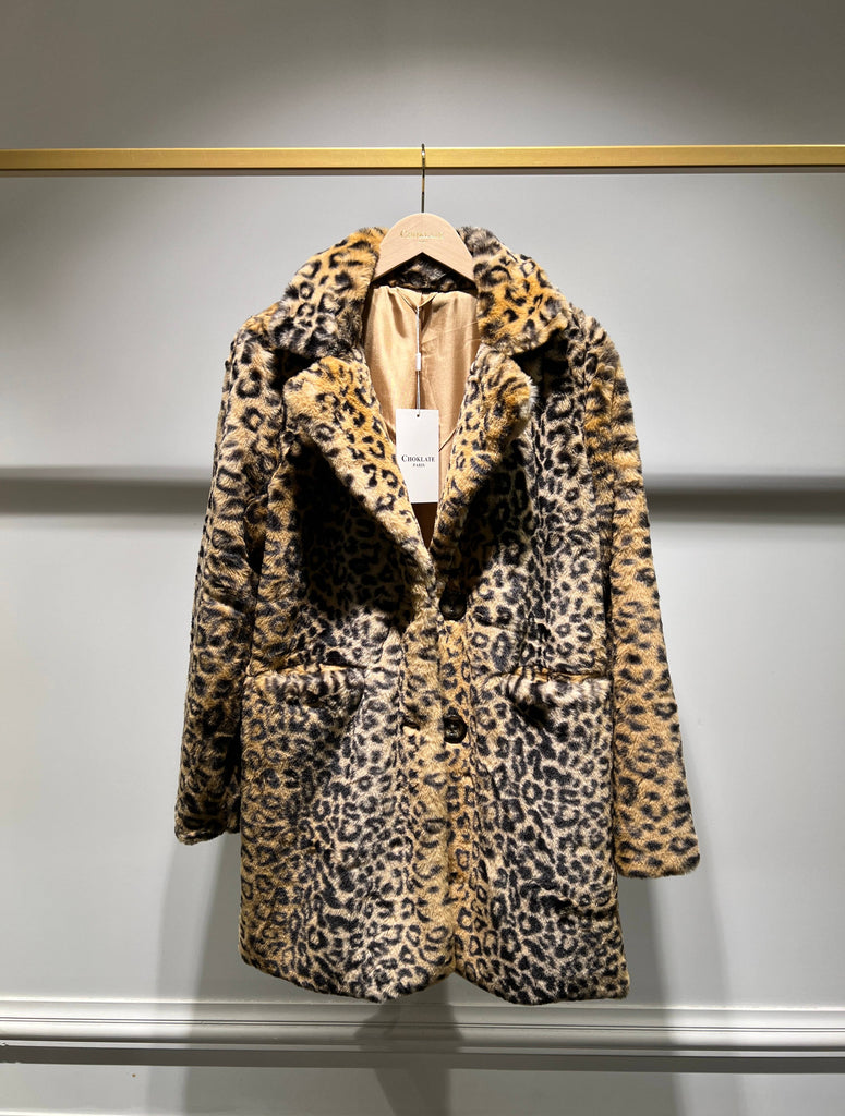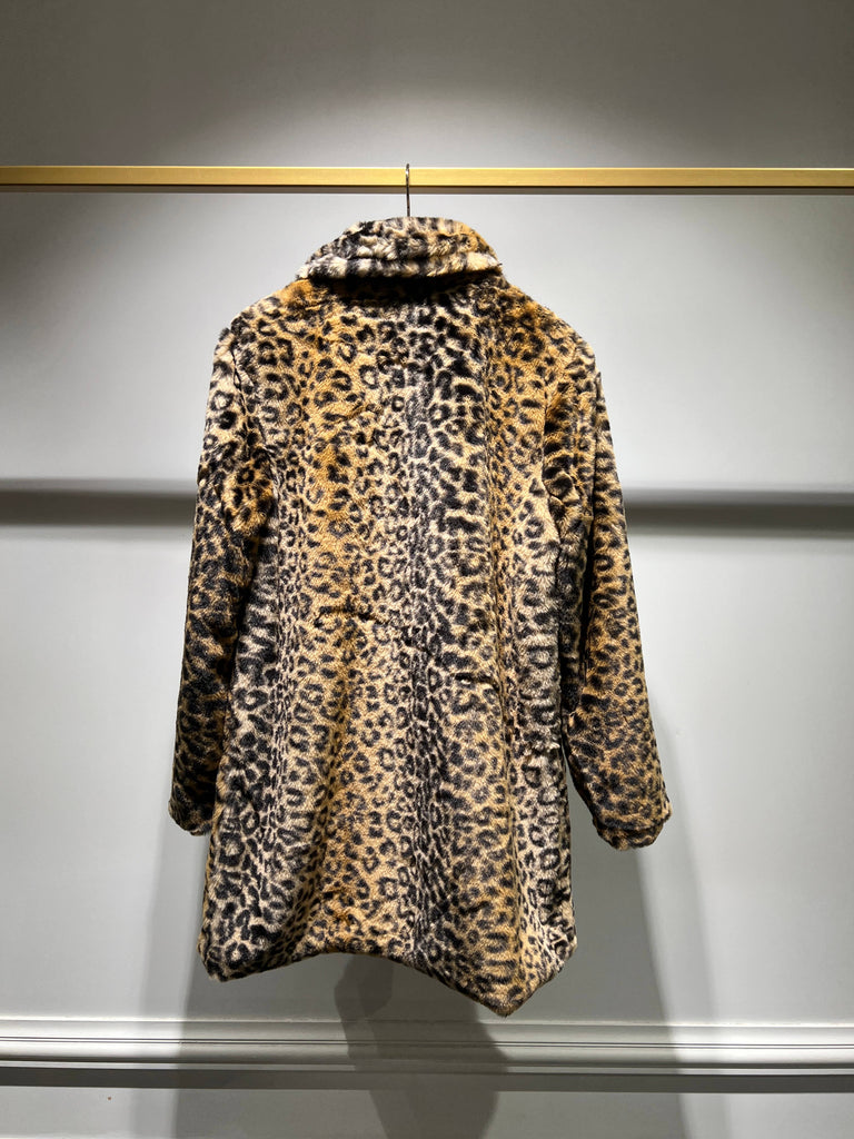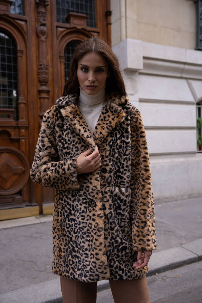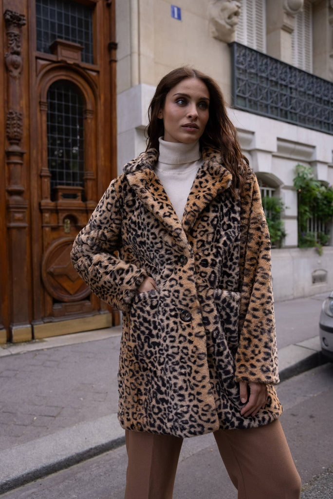 This coat is SO SOFT! It's a classic, for sure. Leopard faux fur coat: - straight cut - two central front pockets - front buttons One size fits S to L. Length: 85cm